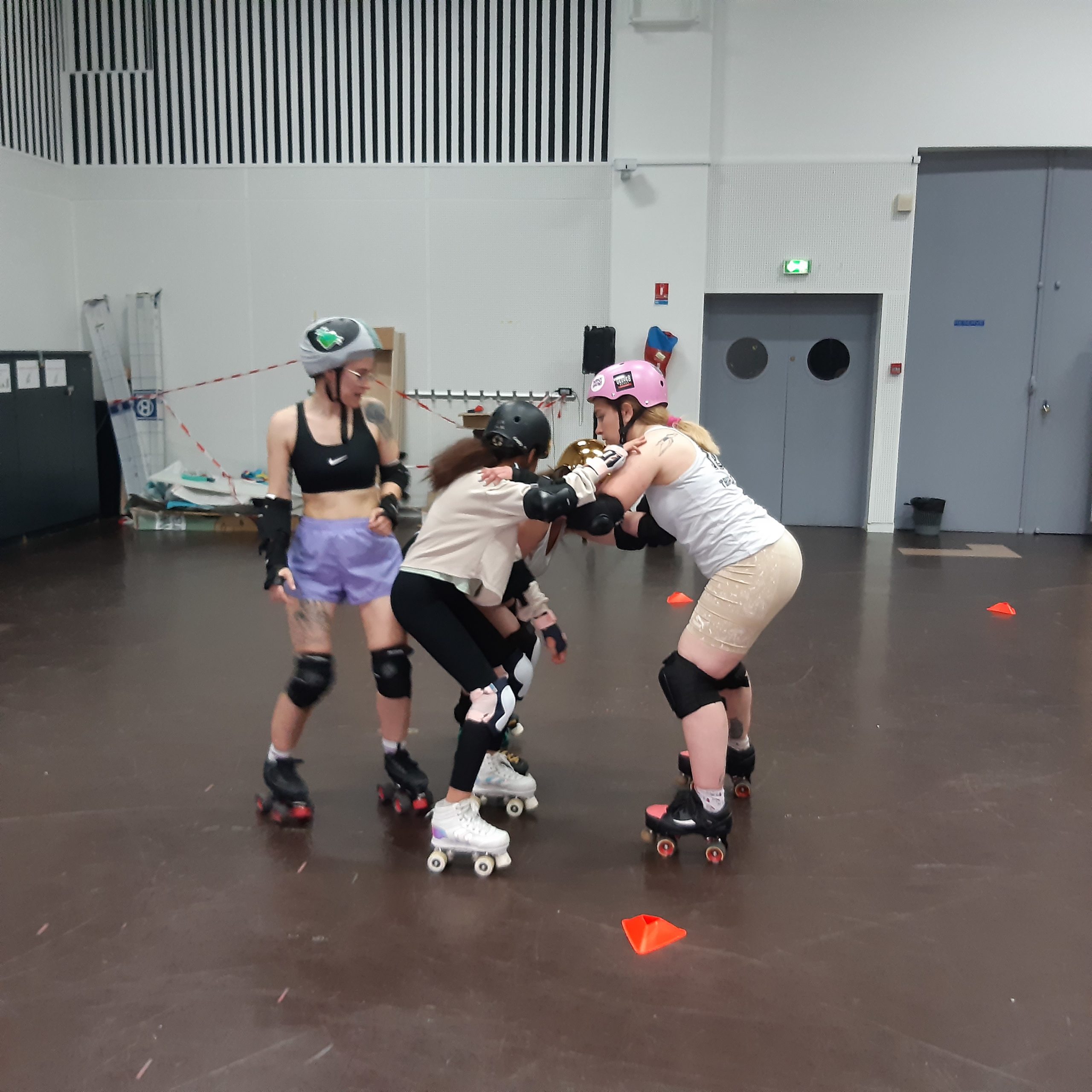 Le lundi 9 mai 2022, nous avions rendez-vous avec nos voisines de la « Bétonnière Roller Derby » pour assister à des démonstrations et explications de ce noble sport qu’est le Roller Derby.