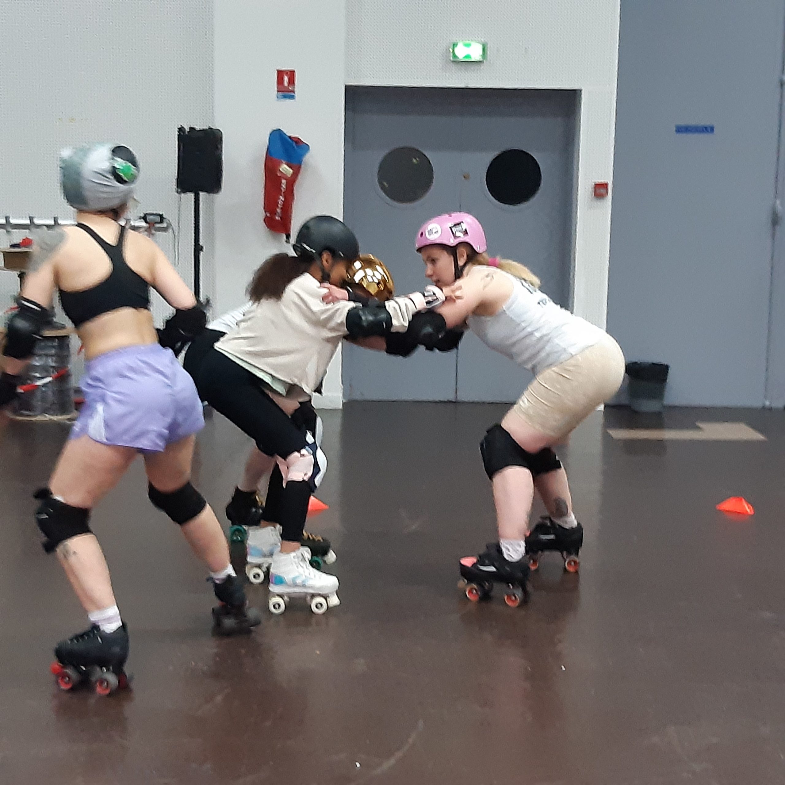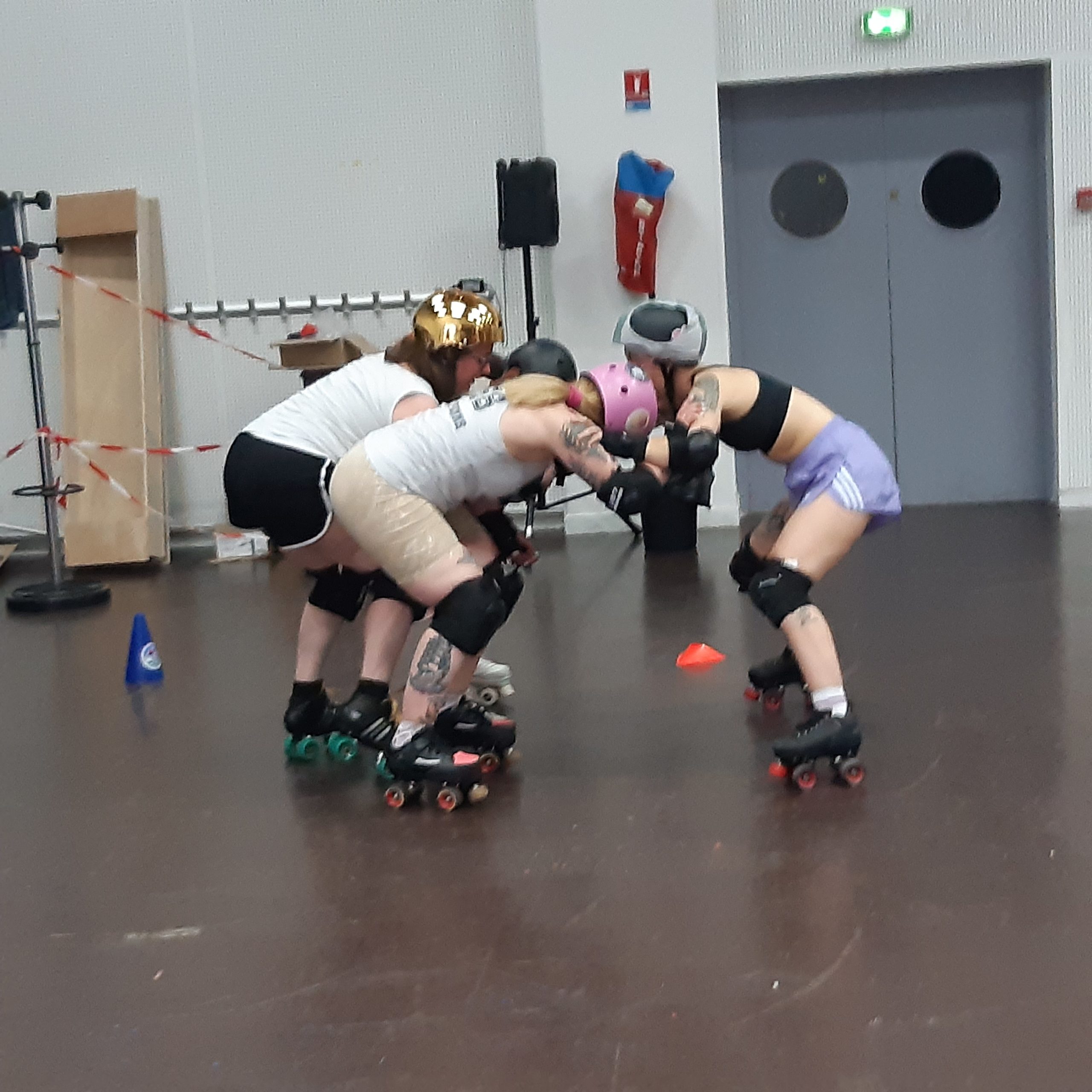 Il est plusieurs façons de pratiquer le roller, et parmi elles, le roller derby. C’est un sport de contact, puisqu’il s’agit, pour une équipe de 5 joueuses, en quads, d’empêcher de passer l’équipe adverse, sur un ovale délimité dans un gymnase. Et d’arriver à aider sa « jameuse » à traverser le « pack » adverse. Le tout, avec des règles et restrictions drastiques, pour éviter que cela dégénère.